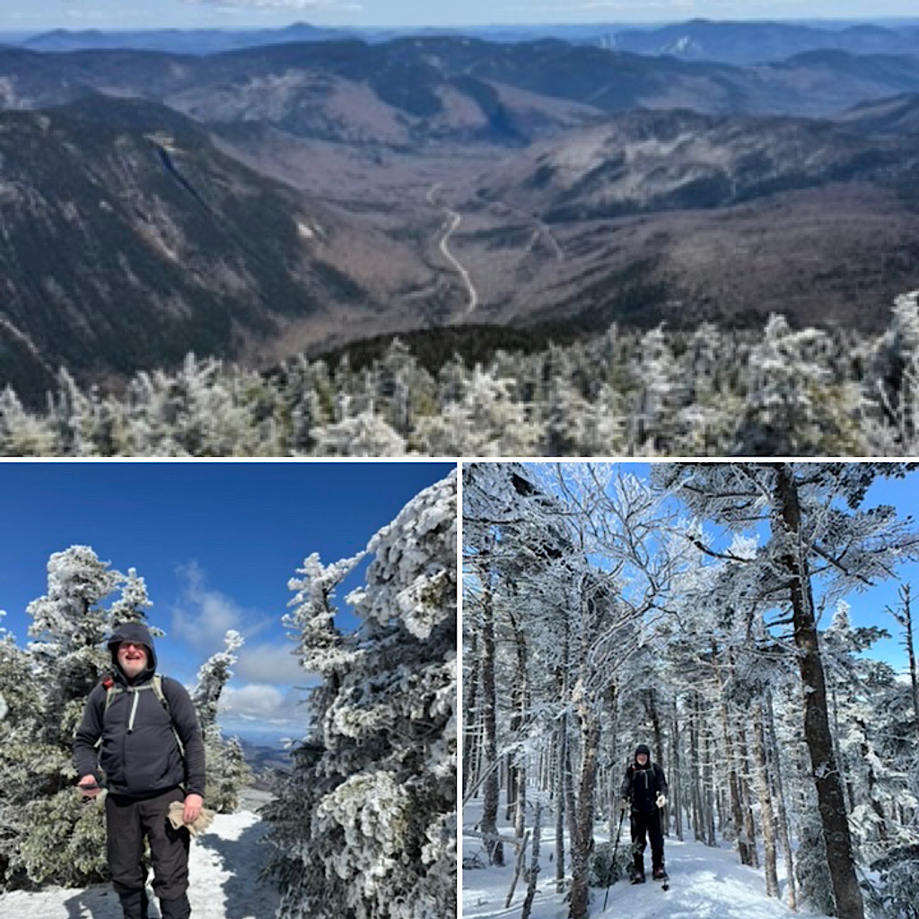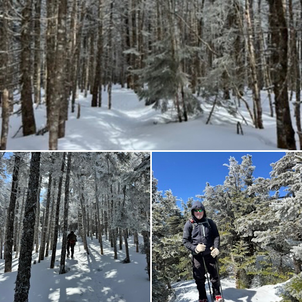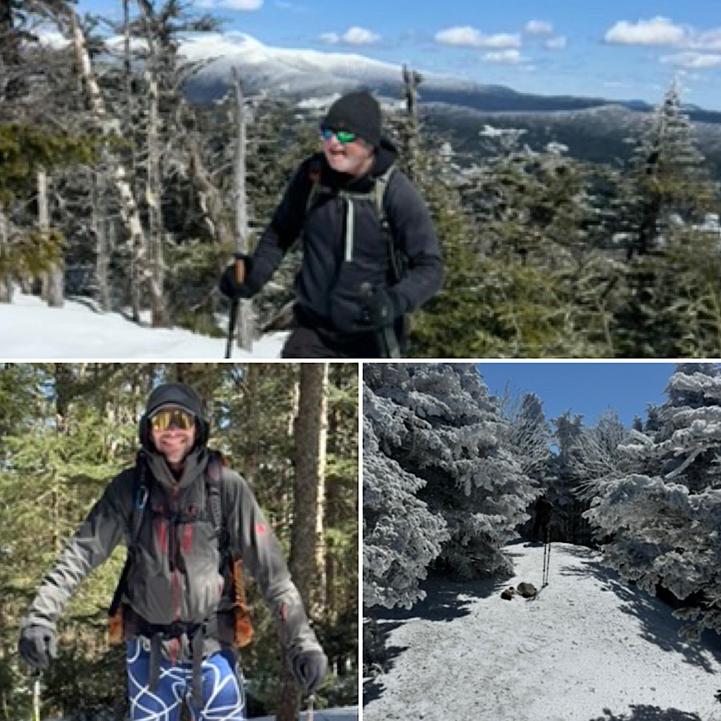 April 17th: Mt Field and Mt Willey. The Conditions were excellent for early spring. Threw on the snowshoes at the Mt Tom Spur. The snowshoes giving us the extra grip we needed between Field and Willey. There was a solid monorail coming down from Field. The Views today were amazing after the sun came out and burned away the morning clouds. —Chase