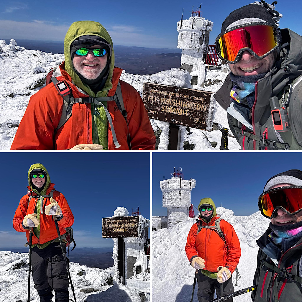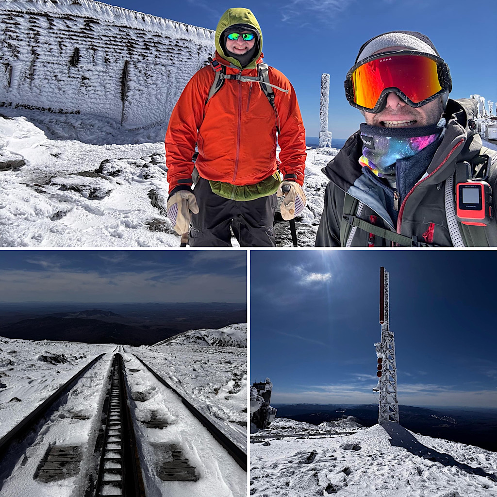 The plan was to head up the Ammo with our oft-returning Gridder guest, wander over to George, then double back to finish a Southern Presidential Traverse. And the trail conditions were awesome until Redline Guide Chase Hall and guest got to the Lakes of the Clouds hut. Everything after that was icy — like crampons-icy. This slowed the team down a lot and they pivoted, deciding to head down after bagging the Mt Washington summit, taking their time enjoying a spectacular spring day — so different from the last one we did.