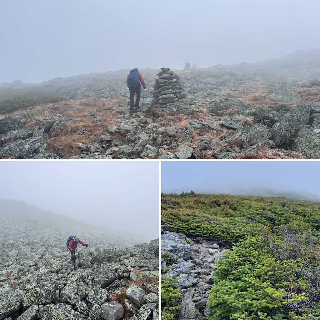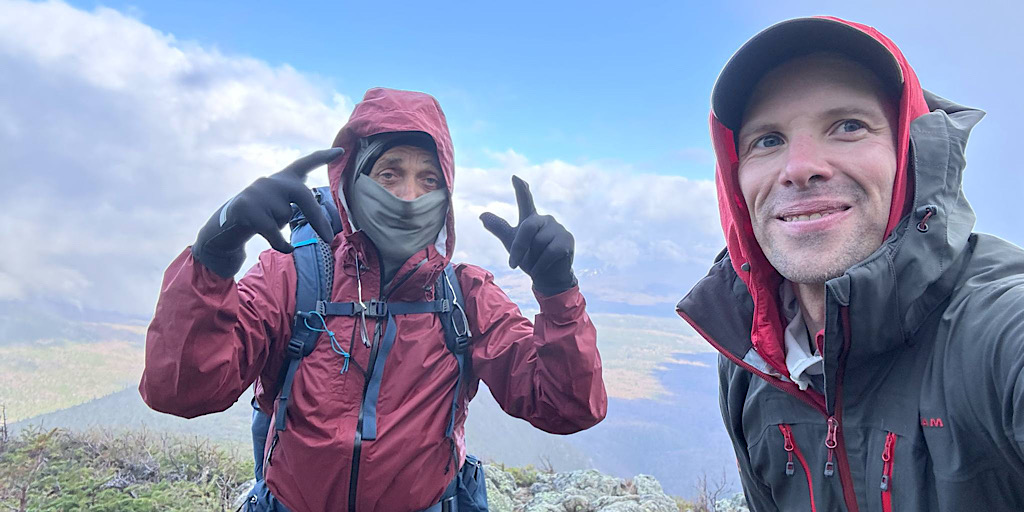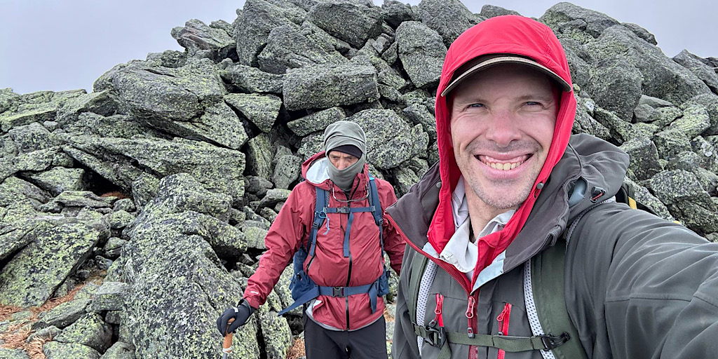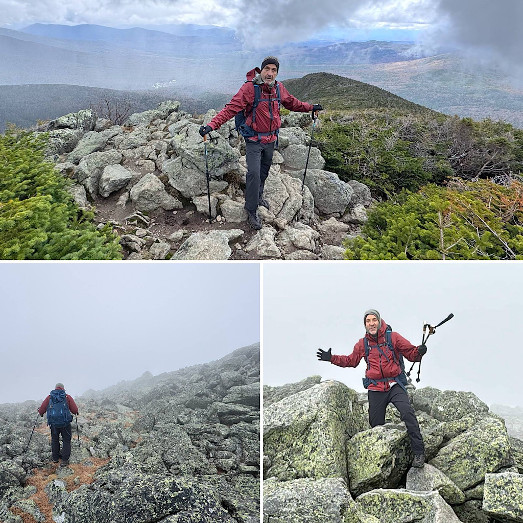 What a fun day to hike Mt. Jefferson, the forecast was calling for early morning thunderstorms, high winds, and clouds but with the early start — we started at 6am this morning — we beat the rain until the last 3/10th, coming down, heading back to our cars. The wind had scattered the clouds and actually lent us some awesome albeit sporadic views from the summit. The trail wasn’t soaked, the rocks were grippy, and this offered safe passage to my guest who was there to capture his 45th 4000-footer with Mt Jefferson. What an awesome day to be had with a really awesome guest. Congratulations for grabbing your 45th peak! —Chase