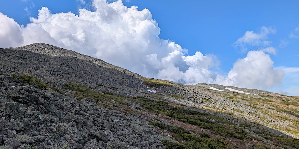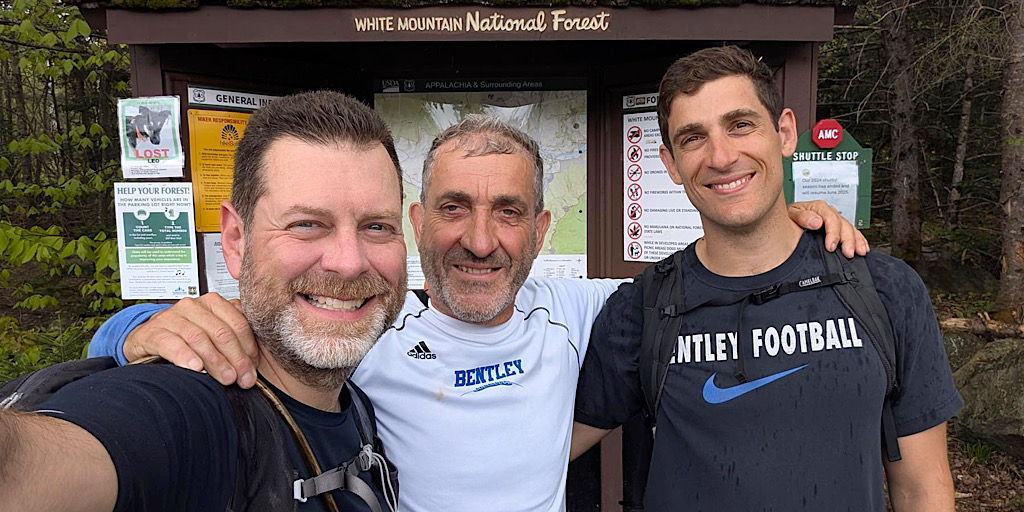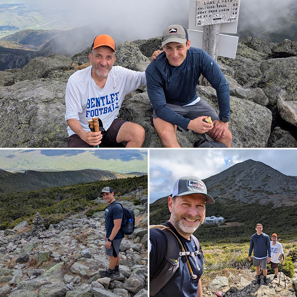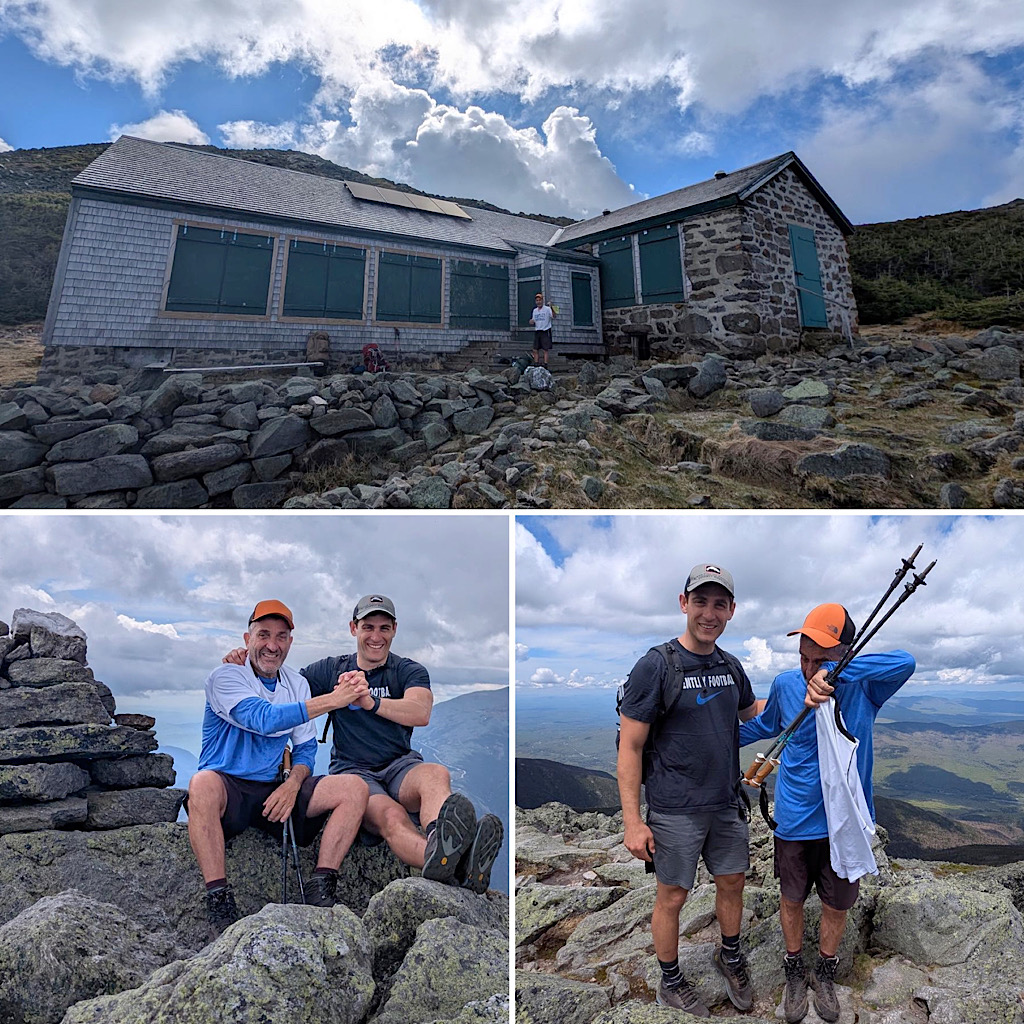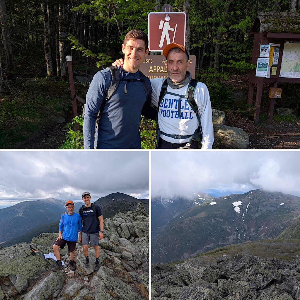 With a possibility of rain in the afternoon, we got an early start from Appalachia Trailhead, taking Valley Way up to Madison Spring Hut. We used the hut as a base camp of sorts, taking a break there to eat and drink, then making the out-and-back trek over to Mt Adams first by way of Gulfside and Airline Trails. The weather stayed nice for us for most of the hike, and we had blue skies with intermittent cloud cover. The summit of Adams itself was partly fogged in, but there was very little wind and the day was comfortable from a temperature standpoint. Most of the snow has melted out, and we encountered almost none on the trails themselves. After summiting Adams and returning to the hut, we ate lunch, then made the out-and-back to Mt Madison for our guest’s final 4000 footer — his finisher. It was nice to have done the heavier lifting first with Adams, since Madison seemed almost like a victory lap. Again with ideal air and ground conditions, we made excellent time to the Madison summit where our guest completed their goal. He was elated, and with his son present, it was a truly memorable and special moment. On the way down, it started sprinkling just a bit, but felt good in the warmer, lower elevations. It seemed like most of our trail chit-chat shifted to food and specifically dinner that night… probably explains why our guest, feeling strong (and hungry) decided we should trail run the last section of Valley Way! What a fantastic day, and a great father/son duo who I truly enjoyed meeting and hiking with. Massive congrats to our guest on crushing the NH48 in his mid 60s, over a span of merely a year! So inspiring. —Eric