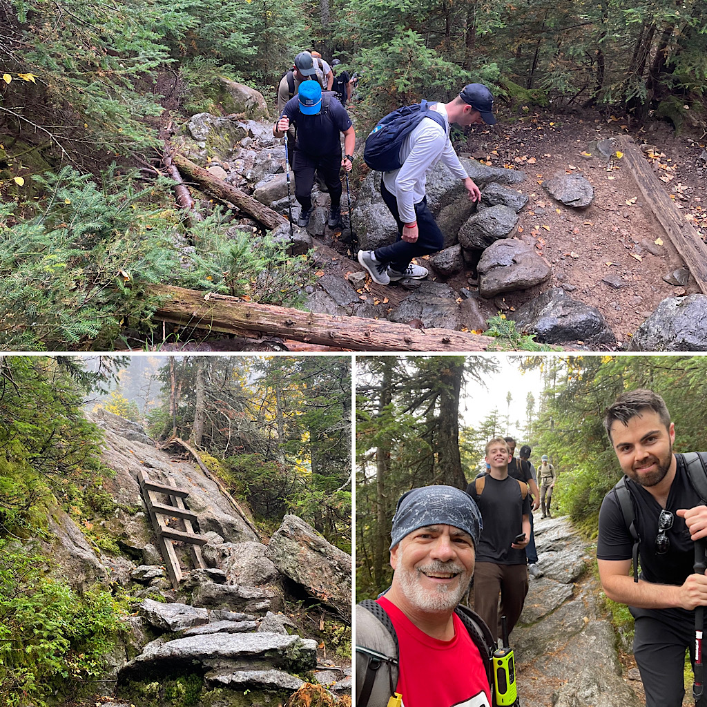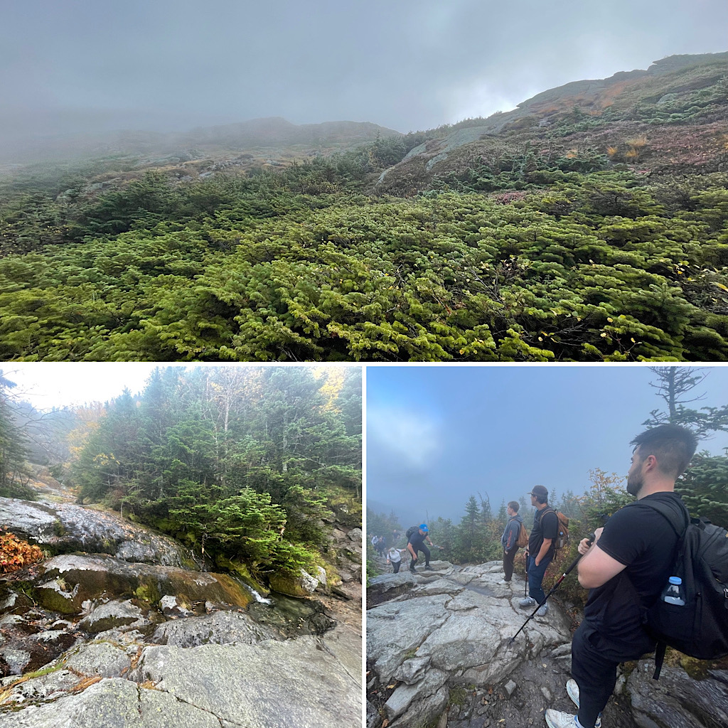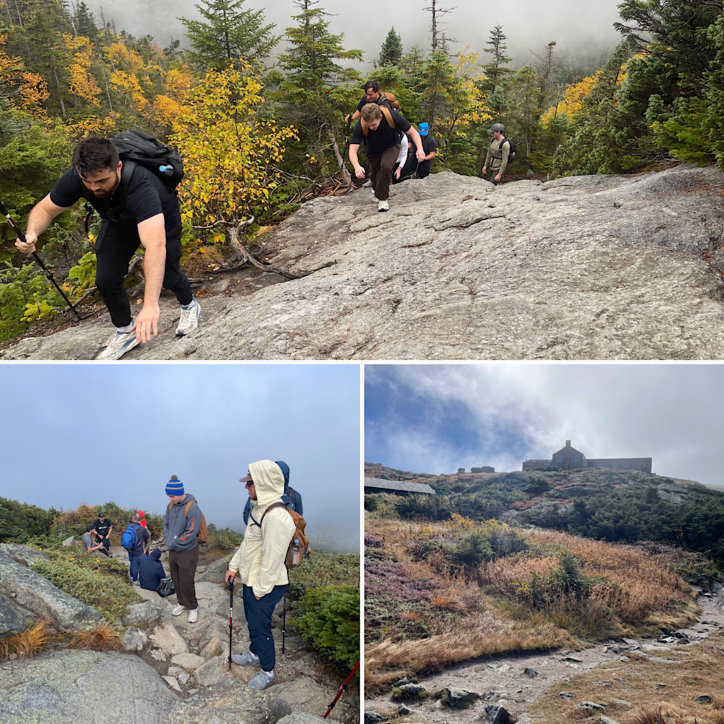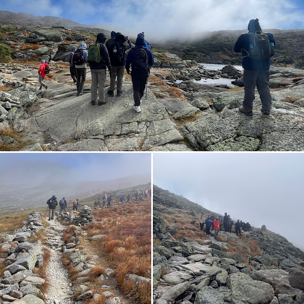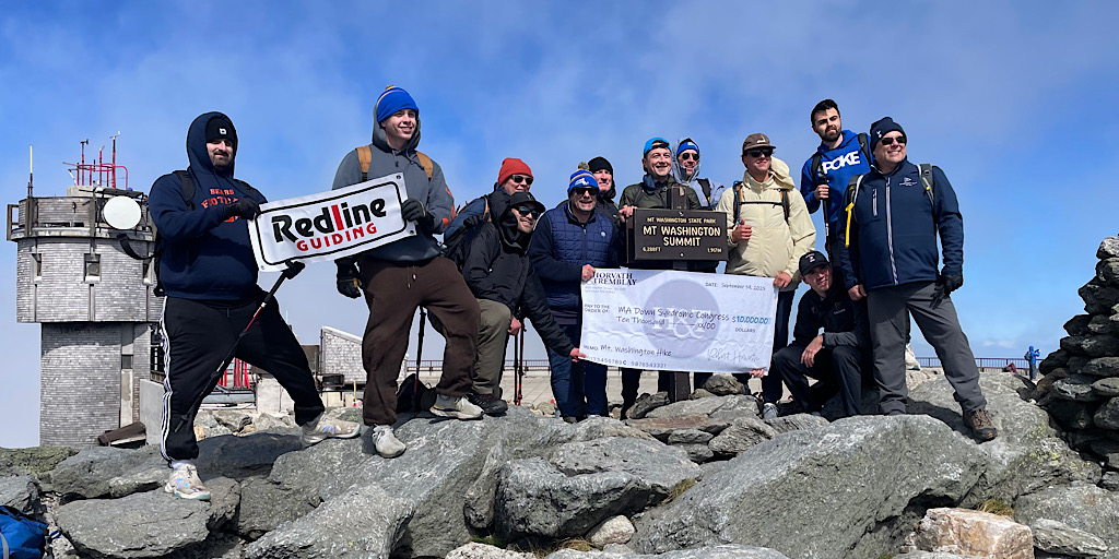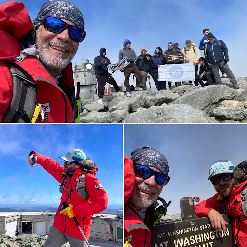 A large commercial real estate company reached out looking for a hiking guide up Mt Washington. They wanted to celebrate a generous $10,000.00 gift to the Mass Down Syndrome Congress and this seemed like a good way to go about it. They requested a somewhat common (as of late) one-way trip; their plan was to descend via the Cog Railway. The group was rather large and required at least two guides (our rule, not theirs). Due to a pretty busy September schedule, however, getting two guides on it was tough, but we did it. We had to call out the big guns (kidding). On assignment for this cool gig were Redline Guides Jamie Leahy and Mike Cherim — which they both enjoyed, having guided together in the past, prior to the founding of Redline Guiding. The initial plan was to hike up Jewell Trail. We suggested, however, that they try the Ammonoosuc Ravine Trail citing that while it is a bit more technical and challenging, it’s a great trail, it’s shorter, and offers a lot to see and experience. Plus it’s just plain old fun. They decided to follow our lead give it a try. If there were any regrets, whatsoever, we didn’t notice. Here are some photos of the amazing day we all had… cool, windy, foggy, sunny: Something for everyone!