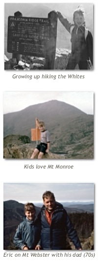 Introduction: Eric grew up in the Boston area and currently lives in Littleton, NH. He found the outdoors early on, being part of an outdoorsy family with a hiker father who had completed his NH 4ks in the early 1970s (when it was still the NH46!). Throughout his teenage years, Eric hiked extensively in the Whites, attended overnight camp each summer on Lake Winnipesaukee, and took family vacations in Acadia, Bar Harbor, ME. At college in upstate NY and for years after, Eric spent more time on the trail as a competitive mountain biker, but eventually turned back to mainly hiking and trail running. Eric spends most of his mountain time in NH and has focused largely on the 4000 footer routes year-round, having completed the NH Grid in 2023. With a second Grid about two-thirds of the way done, and a third one already past the point of no return, it seems likely that this will never end, so he mixes it up by “adventure gridding” new routes, off-trail routes, combination hikes (two or three in a day), and so on. In his free time, while not hiking, Eric does trailwork with various organizations and is the trail adopter for Blueberry Mountain Tr in Benton, NH, as well as three trails at Blue Hills Reservation in Milton, MA.