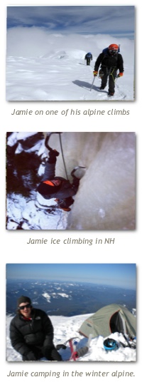 Résumé: Cotopaxi, Ecuador 19,347ft. 2 ascents (one guiding) Mt. Rainer, Washington 2 ascents 14,410ft. Mt. Shasta, California 5 ascents 14,179ft. Mt. Hood, Oregon 2 ascents 11,149ft. Mt. Washington, New Hampshire 6,288ft. 130+ ascents, 110+ guided. Mt. Pichincha, Ecuador 15,692ft. 2 ascents (one guiding), Cayambe, Ecuador 18,999ft 4 ascents (3 guiding), Guided Imbabura Ecuador 15,190ft, Guided Fuya Fuya Ecuador 13,986ft., Guided Ishinca, Peru 18,147ft., Guided Urus Este, Peru 17,782ft., Guided Yanapaccha, Peru 17,913ft.. Technical ice to WI5 and rock climbs to 5.10 throughout the northeast.