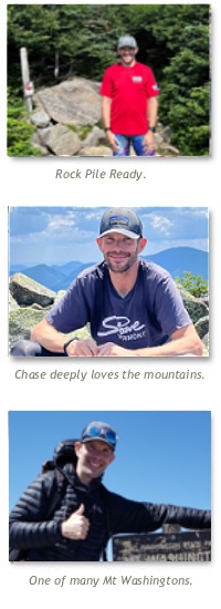 Résumé: Chase finished his first round of the 48 4000-footers in May 2021. In 2023 he finished his 52-With-A-View list. Chase has also completed his GRID as of April of 2024. Chase has hiked the White Mountains in all four seasons. Chase had completed a Single Season Winter48 in 2022, and again in 2024, as well as completing two single day Pemi Loops (fall) and two single day Presidential Traverses (summer). In 2025 Chase ran a double Presi and has applied for FKT (Fastest Known Time) recognition.