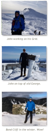 Introduction: John Bergman, a.k.a. “T-Shirt” — a name that comes from the ridiculously cold temperatures that you’ll see him hiking in, clad only in a t-shirt, of course! As a child John always enjoyed trips to New Hampshire. Fond memories. He dreamed of someday living in the Granite State. After completing his tour of duty with the US Navy Submarine Service, he made the dream a reality and moved to Durham, right in the heart of New Hampshire’s “Seacoast Area.” Always a life-long bucket-list item for John, he wanted to hike the “NH 48 4000-footers” and he was finally able to achieve that. He started working on the list in 2010 and hasn’t stopped hiking since. After completing his first round of the 48 he went on to do the Winter 48 and then the Four-Season 48 after which time he decided at that point that he might as well hike the grid. So he did.