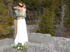 Imagine this: the sun is starting to peek above the horizon, a gentle breeze blows, it’s dry, comfortable, the temperature’s perfect, the right amount of cloud to make the sunrise extra special, and there you are staring into the eyes of your soon-to-be life partner. The vows. The promise. The Justice invites you to seal the deal with a kiss. It happens and it’s beyond words. Is this the mountain-top or wilderness wedding of your dreams? This one was (see inset), atop Mount Kearsarge North in Intervale NH on a June morning. And now it can be yours, too. We can’t control the weather, but everything else is within our grasps. It’s unique. It’s special. It’s beyond words.
